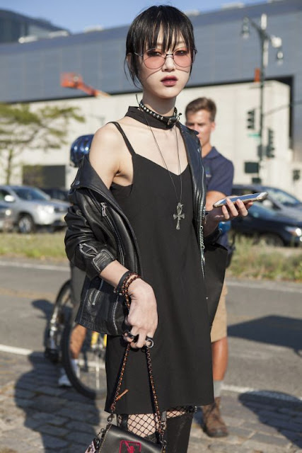 Raramente siempre me la encontraba en páginas de Street style y todas las veces su estilo llamo mi atención, sin embargo lo dejaba pasar, hasta hace poco que volví a encontrar otra imagen y ya por fin decidí investigar quien era la chica que estaba detrás, así descubrí que era modelo y no fashion Blogger o influencer de Instagram, lo que no hubiera importado, pues a mi lo que me encanta es su manera de vestir con una mezcla alternativa entre el estilo actual gótico y el rockero.